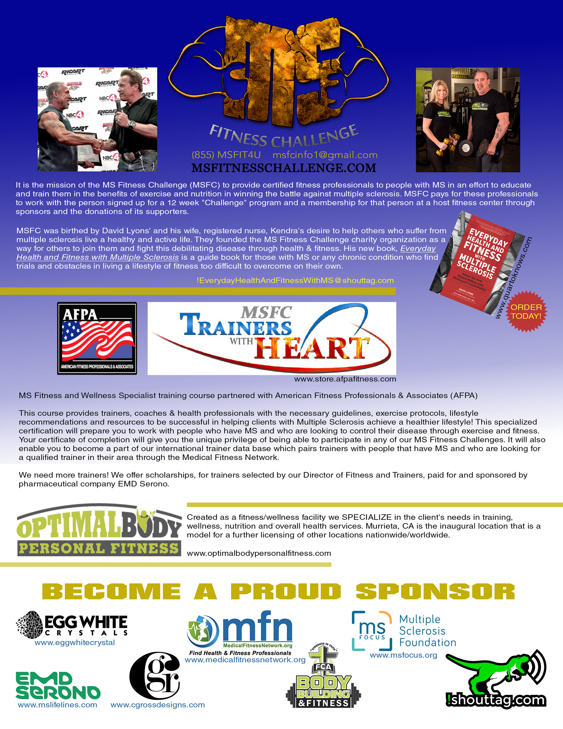 David Lyons is an inspiration to all especially those who have multiple sclerosis. I was asked to create an ad that will be featured in Arnold Schwarzenegger's-America's Next Great Trainer Magazine ad.